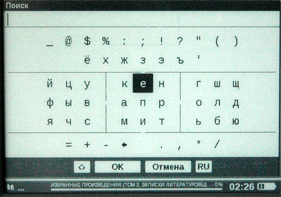 Сделано все очень грамотно, небольшую строку для поиска можно набрать без каких-либо затруднений. Более того, этот поиск, что особенно радостно, работает и в тексте - лично мне, например, нередко бывает нужно найти какую-то строчку в книге, так что данная возможность очень и очень полезна!