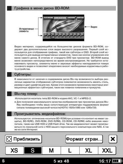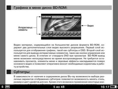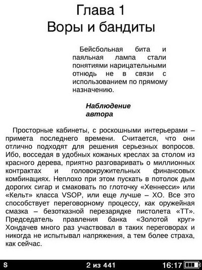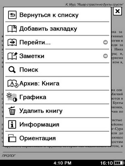 Документы EPUB читаются точно так же, как LRF, и для них доступны все те же самые возможности.