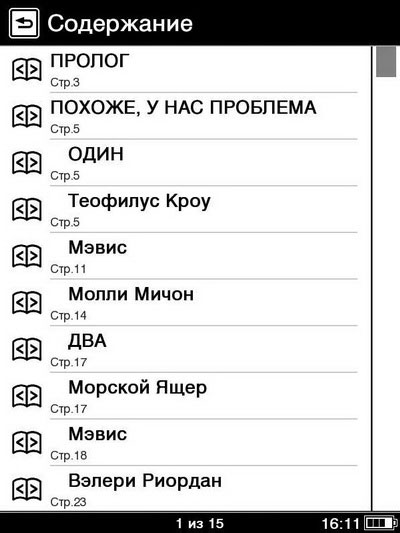 Содержание выводится одноуровневым, и по нему можно перемещаться с помощью специального скроллера.