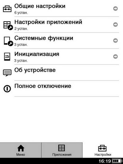 В установках ничего особо интересного не обнаружил - настройки даты-времени и режима энергосбережения.