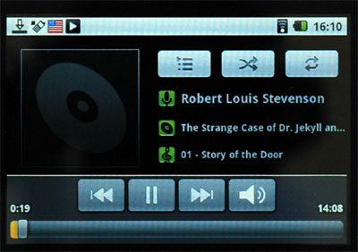 Прослушивание сделано удобно. С помощью ползунка - как и в книгах - можно перемещаться на любую позицию трека.