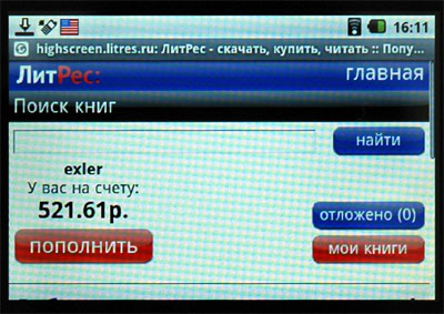 Доступ к онлайновому магазину книг Litres.ru (при наличии Интернета через WiFi). Если вы зарегистрированы на "Литресе" и на счету есть какие-то деньги, то с Alex можно приобретать и сразу читать книги.