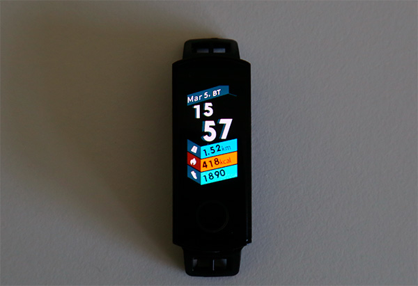 Экран, конечно, намного удобнее и комфортнее, чем у предыдущей модели, - вот просто небо и земля. И с прямыми солнечными лучами они проблему все-таки решили: у предыдущей модели на солнце вообще ни черта не было видно (но там была другая матрица), у этого браслета изображение хотя и слепнет, но все-таки остается достаточно различимым, что ценно.