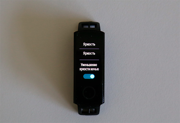 Настройки яркости. Можно яркость уменьшать автоматически после 21 часа. У яркости три уровня, по умолчанию выставлен второй - он уже очень яркий, AMOLED все-таки.