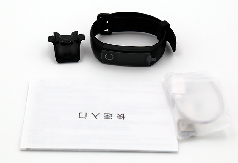 Комплект поставки простейший: фитнес-браслет, крэдл для зарядки, кабель USB-microUSB, инструкция на китайском.