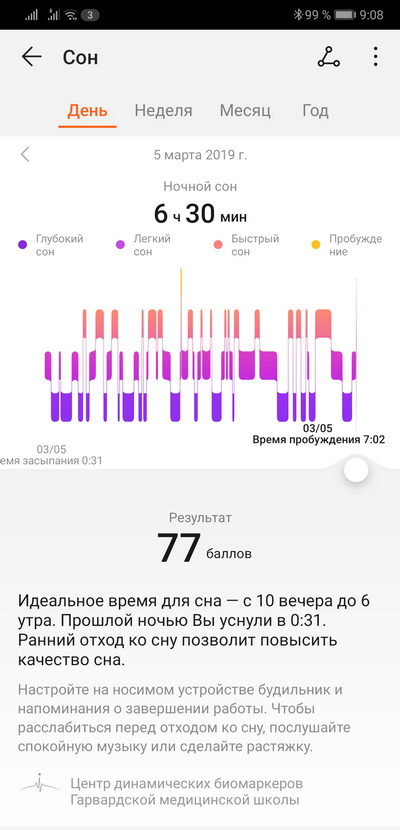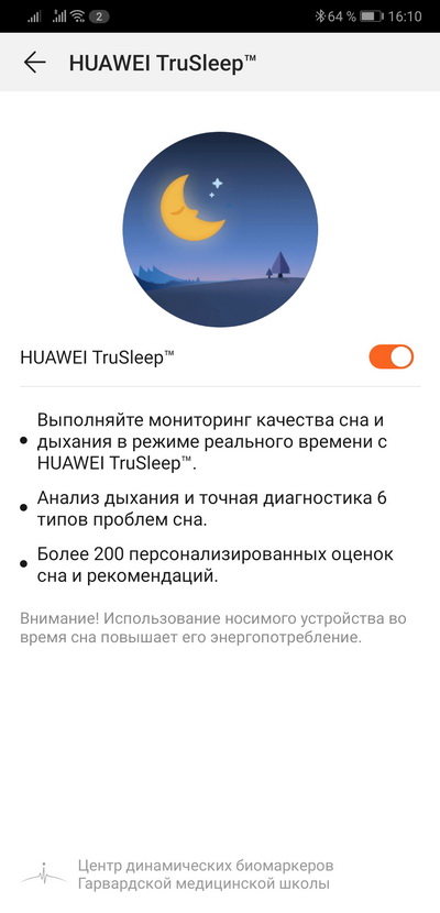 Мониторинг качества сна Huawei TruSleep. Хорошая штука, очень продвинутая, да и меряет достаточно точно. Причем еще ухитряется замерять и ночной, и дневной сон, чего, например, мои часы делать не умеют, меряют только ночной.