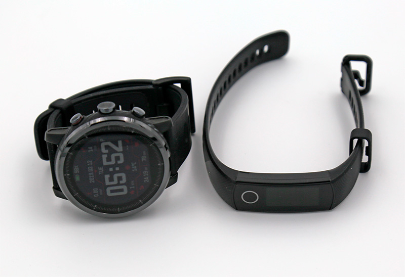 Вот этот фитнес-браслет рядом с моими часами Amazfit Stratos.