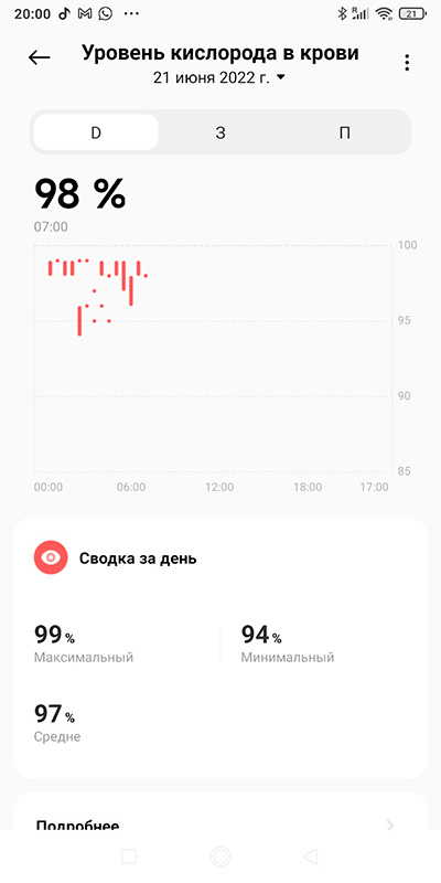 Определение оксигенации крови - примерно так же, как и у остальных фитнес-трекеров и умных часов. Измеряет более или менее нормально, но временами может заметно занижать.