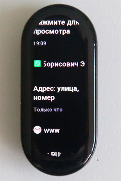 Свайп от циферблата вниз - список уводомлений, на каждом из которых можно щелкнуть и прочитать уведомления целиком.