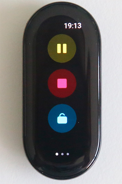 Запуск тренировки. Там свайп влево - управление аудиоплеером смартфона, свайп вправо - пауза, закончить тренировку, заблокировать экран от нажатий. После окончания тренировки выдаётся общая сводка с информацией.