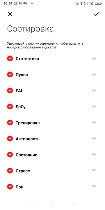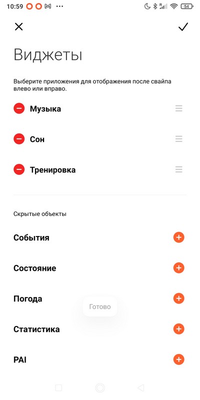Свайп влево-вправо - виджеты. Их можно настраивать в приложении. Я установил управление аудиоплеером, сон и спорт. Отдельно замечу, что в предыдущей версии сна в виде виджета не было, и это было очень даже печально. Здесь появился, за что большое спасибо.