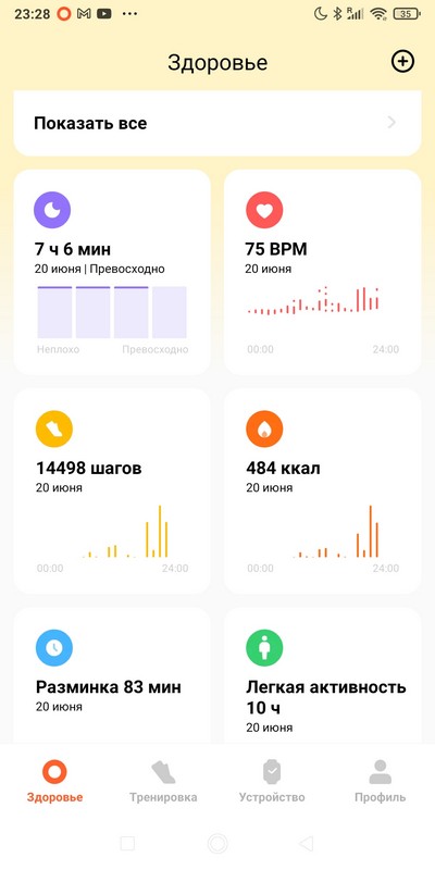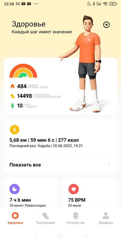 Работа приложения Mi Fitness с этим фитнес-браслетом.