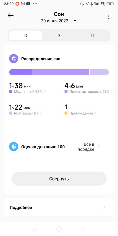 Фазы сна тоже определяют неплохо. К сожалению, плохо определяют REM-сон, но, судя по графикам, это может быть относительно несложно исправить софтом.
