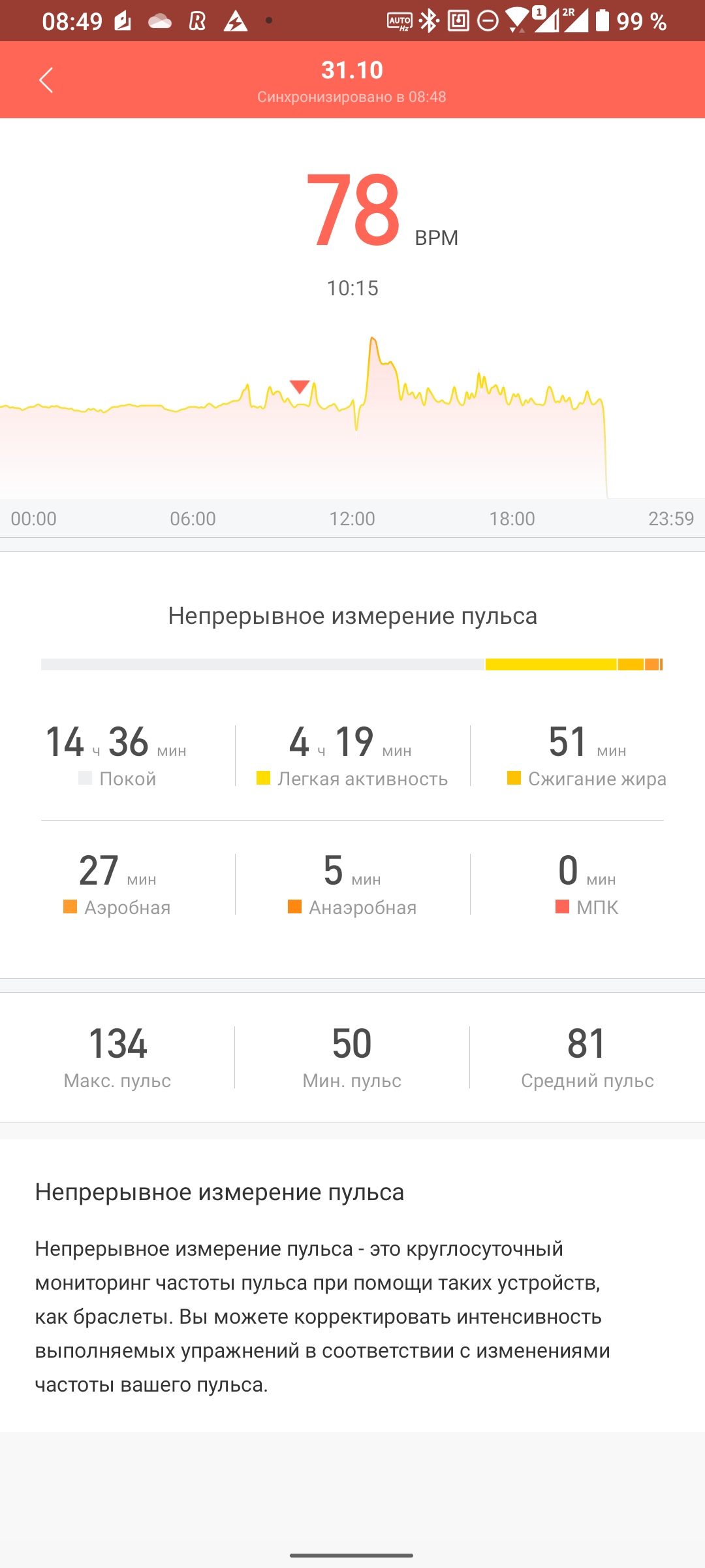 Важный момент - как он отслеживает пульс в дневное и ночное время? Даже самые дешевые Гармины делают это непрерывно (в том числе во время ночного сна), а вот первые Apple Watch и куча китайских браслетов раньше имели непрерывную запись ТОЛЬКО во время тренировки. И если днем писали пульс более-менее часто, то ночью частота измерений снижалась до каких-то совсем неприличных значений. Как с этим обстоит дело здесь?