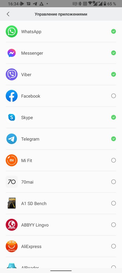 Настройки ярлыков браслета (приложений, которые будут появляться по свайпу влево-право на экране браслета).