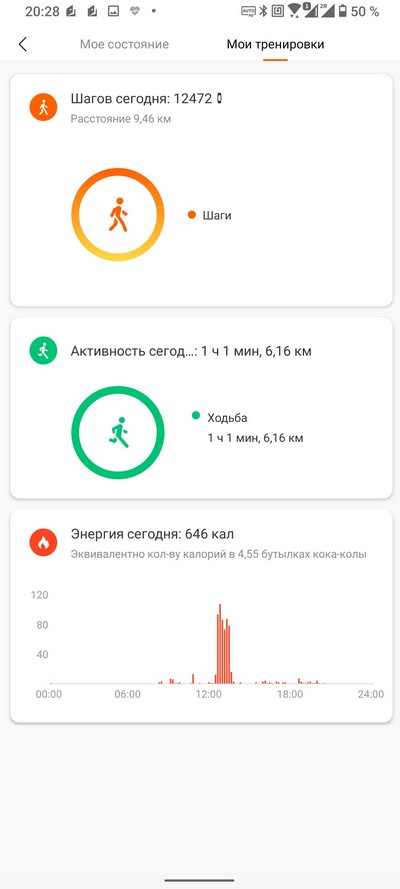 Вот, например, статус активности и PAI. Их можно прокручивать вниз для получения подробностей.