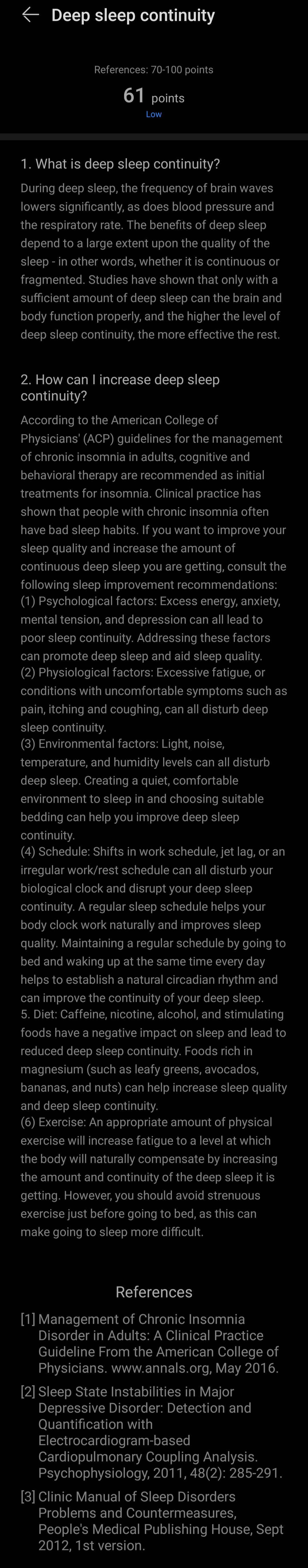Глубокий сон в процентах - это доля от общего времени сна. Время глубокого сна - насколько продолжительны или фрагментированы отрезки глубокого сна в целом. Собственно, в приложении Huawei все и разъяснено. На расшифровке сна за прошлую ночь кликните на конкретный показатель и увидите подробное описание. По крайней мере в моем Huawei Health так. См. скриншоты.