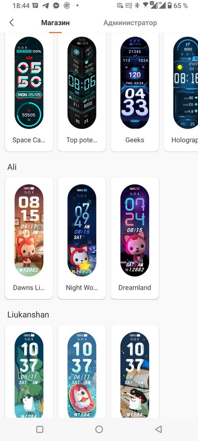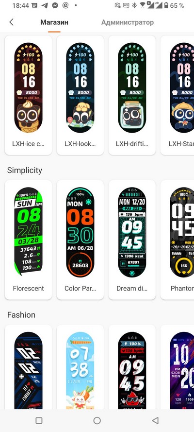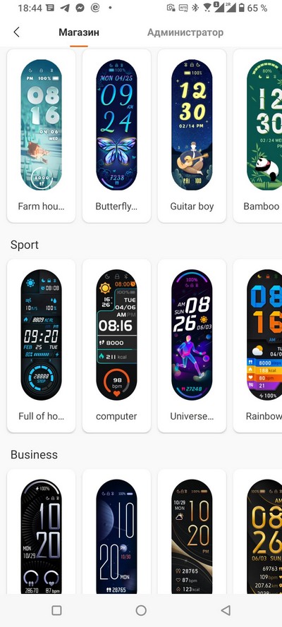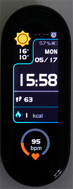 Главный десктоп - он же циферблат. Циферблат меняется длинным нажатием на экран (в памяти браслета их хранится пять штук) или в приложении Mi Fit.