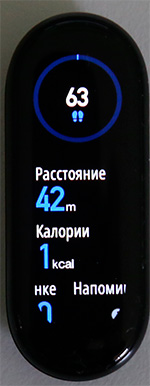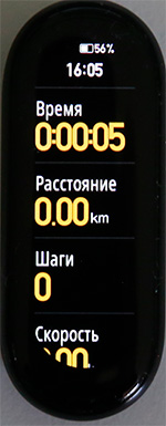 Когда я первый раз вышел на прогулку в солнечный день, то слегка загрустил: на прямых солнечных лучах мелкие цифры данных тренировки были почти не видны. Однако потом я сообразил, что это же - фитнес-браслет, датчика освещенности у него нет, а яркость дисплея наверняка по умолчанию очень невысокая, чтобы дольше жил от одного заряда.