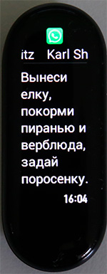 То, что экран вырос в размерах, радует, потому что легче воспринимать информацию. И тут даже длинные сообщения уже более или менее читаются, а то на первых фитнес-браслетах с малюсенькими экранами с этим было совсем сложно.