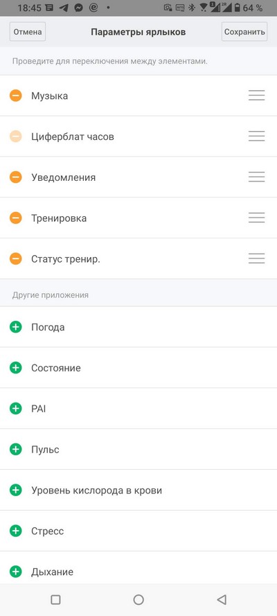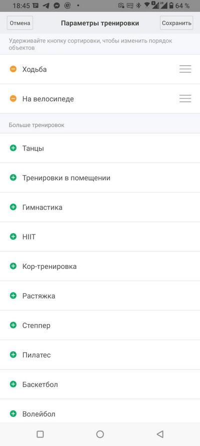 Тренировки (их виды настраиваются в приложении), старт тренировки.