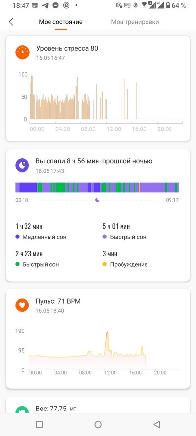 Состояние, уровень стресса (тоже там лажа какая-то), пульс.