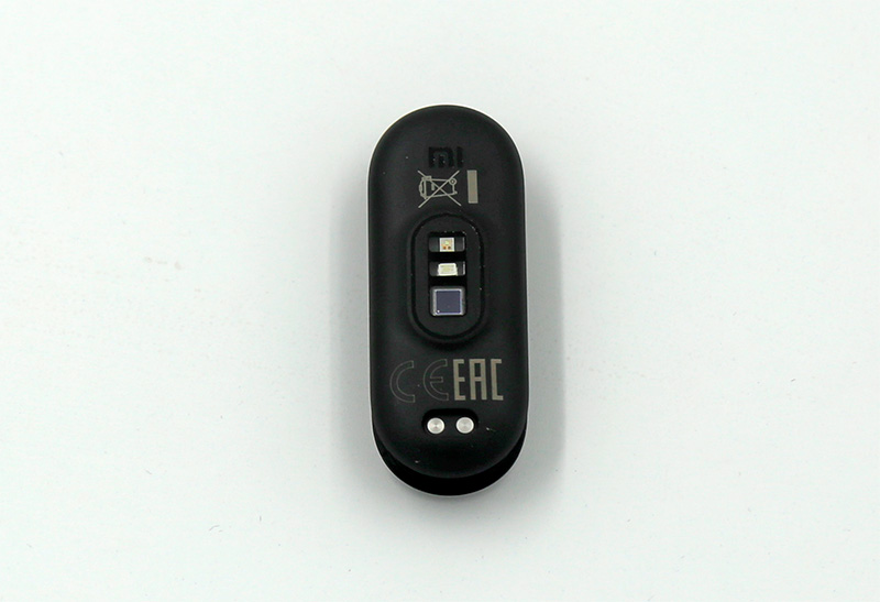 На нижней части браслета расположены датчики для измерения сердечного пульса и уровня оксигенации крови, а также два контакта для зарядки.