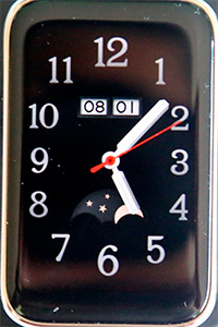 Режим AOD здесь один-единственный, страшно примитивный. Он никак не меняется и не зависит от используемого циферблата. По нему можно узнать время и уровень заряда.