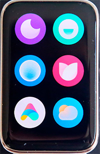 От циферблата свайп влево - виджеты приложений, установленные в настройках.
