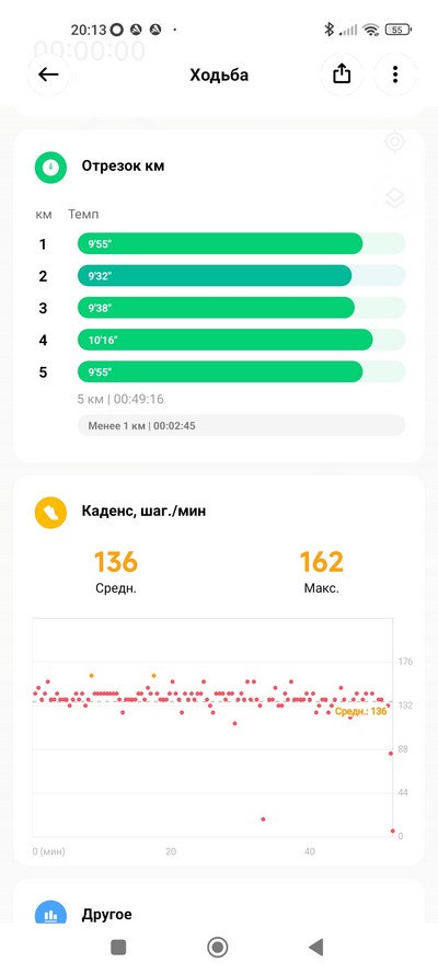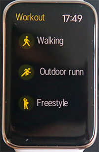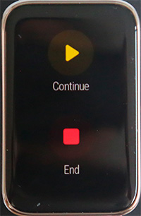 У тренировки можно свайпом вверх менять окна с информацией, свайп влево - управление воспроизведением на смартфоне, свайп вправо - пауза или завершение тренировки.