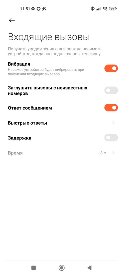 Настройка быстрых ответов, мониторинг пульса. Кстати, не очень понятно, для чего вообще здесь нужны эти быстрые ответы, при том что устройство их не поддерживает.
