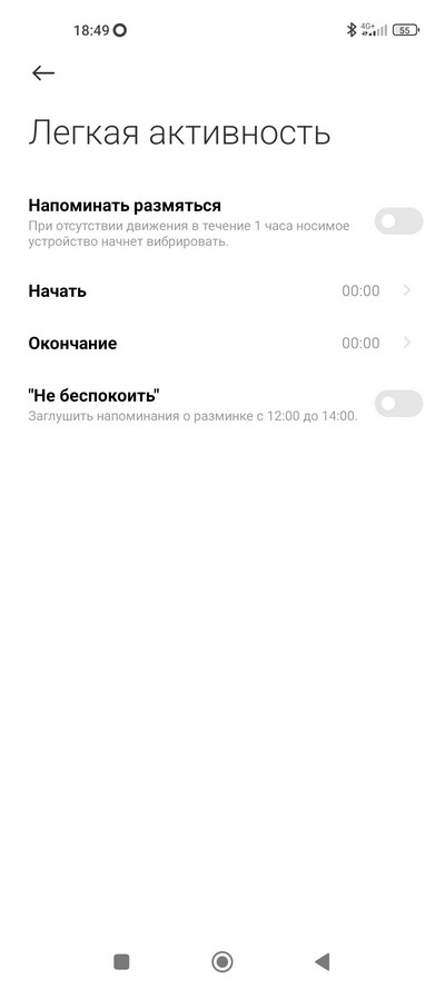 Из замеченных странностей - трекер зачем-то отдельным сигналом сообщает о включении режима "Не беспокоить", и что еще более странно - оповещает об окончании этого режима будильником. И это никак не отключается. На мой взгляд, это дурдом какой-то. Если мне нужно поставить будильник на какое-то время, я просто поставлю будильник. Режим "не беспокоить" означает только то, что в течение этого периода устройство не должно издавать никаких звуков или вибраций.