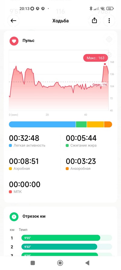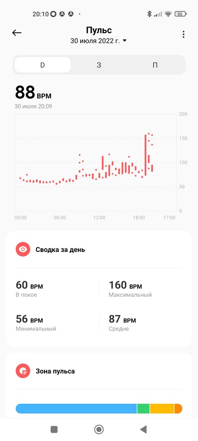 Пульс в спокойном состоянии определялся достаточно точно, на тренировке все зависело от ситуации: трекер мог сильно завышать пульс, когда запястье становилось влажным.