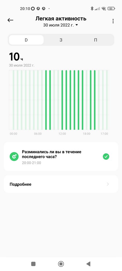 Что очень существенно - здесь есть датчик освещенности, который работает вполне корректно. Поэтому не придется вручную менять яркость при выходе на улицу под яркое солнце, как это приходится делать с трекерами-часами, не имеющими такого датчика.