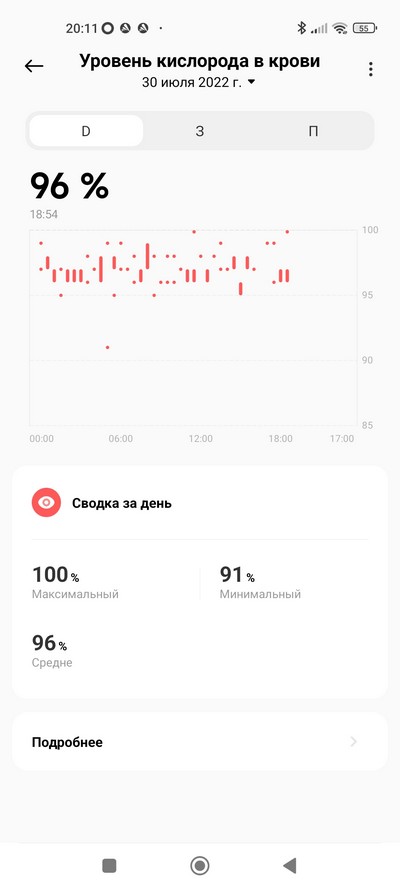 Определение оксигенации крови - примерно так же, как и у остальных фитнес-трекеров и умных часов. Измеряет более или менее нормально, но временами может заметно занижать.