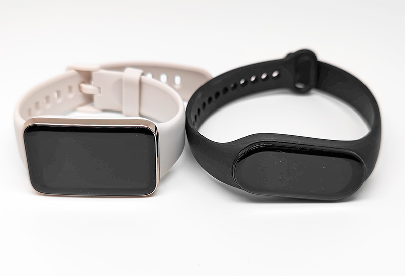 И сразу сравним его со Smart Band 7. Экран заметно больше, не так ли? Модель Pro - это уже умные часы, а Smart Band 7 - фитнес-браслет, хотя и с достаточно большим и качественным дисплеем.