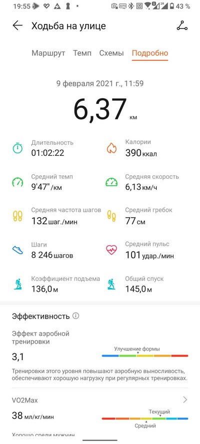 Расстояние, трек прогулки, средние скорости и все остальное часы Huawei зафиксировали достаточно точно, небольшая лажа была с определением максимального пульса, однако такие вещи зависят от браслета и от того, насколько хорошо он затянут (а у миланской петли с этим есть определенные проблемы). Потому что в обычном режиме эти часы пульс измеряли очень четко - я неоднократно сверял с тонометром.