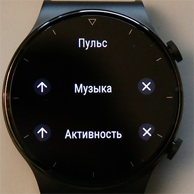 Настройка избранных виджетов для скроллинга влево-вправо от циферблата.