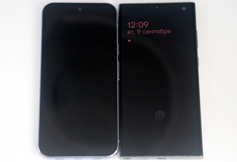 Этот смартфон (слева) рядом с моим Samsung Galaxy S23 Ultra. Они и по габаритам очень похожи, и по весу - эдакие достаточно увесистые "лопаты".