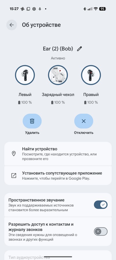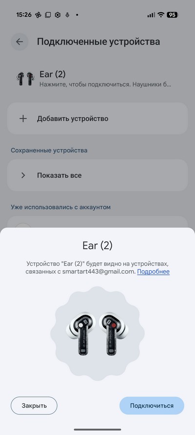 Для проверки беспроводного звучания подключил наушники Nothing Ear (2). По какому кодеку наушники подключились - в смартфоне не указали, однако качество звучание было просто отличное: удивительные для наушников такого типа басы, четкая середина, детальные высокие. Уровень максимальной громкости был достаточен для использования на улице в шумном окружении.