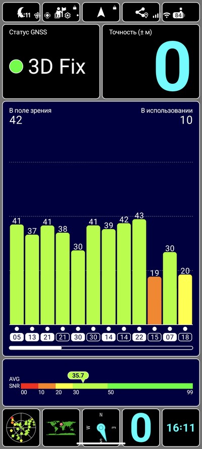 Навигация: GPS (L1+L5), GLONASS, GALILEO, BDS, QZSS, NavIC