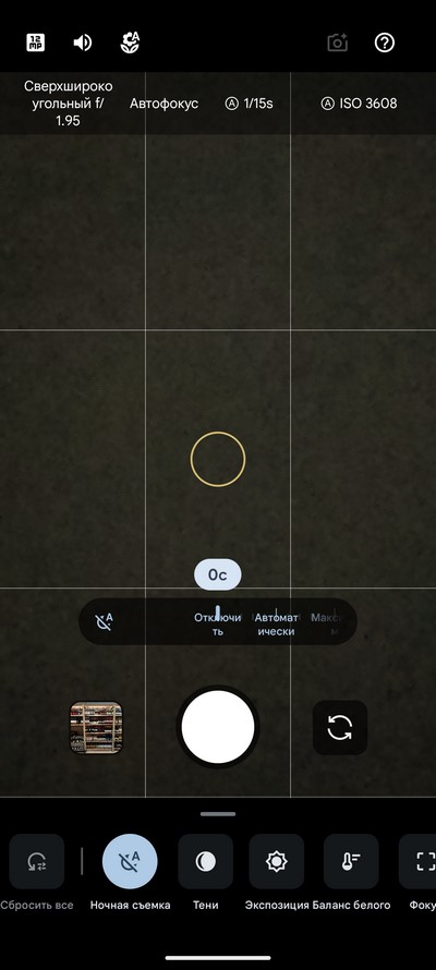 Сверху выводятся информационные пиктограммы, внизу расположена линейка камер и зумы: сверхширик, основная камера, 2-кратный гибридный зум основной камеры, 5-кратный зум длиннофокусника, 10-кратный гибридный зум длиннофокусника. Если нажать на любую камеру и подержать (или просто провести пальцем по блоку с камерами), то будет линейка зумов вплоть до аж 100-кратного, для которого при первом использовании нужно будет скачать специальный модуль AI. В линейке зумов есть фиксация легкой вибрацией на отметках 10, 20, 30, 50 и 100-кратного.