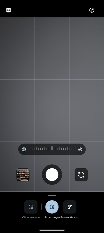Ниже идут режимы съемки, под ними - переключение между фото и видео, справа и слева - разные настройки.