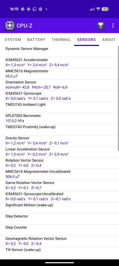 Дополнительно: акселерометр, гироскоп, датчик приближения, компас, барометр, термометр (температура кожи)