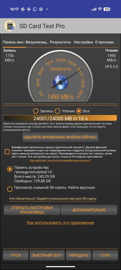 Флеш-память: 256/512 ГБ или 1 ТБ UFS 4.0