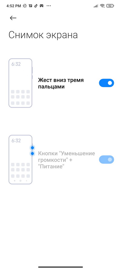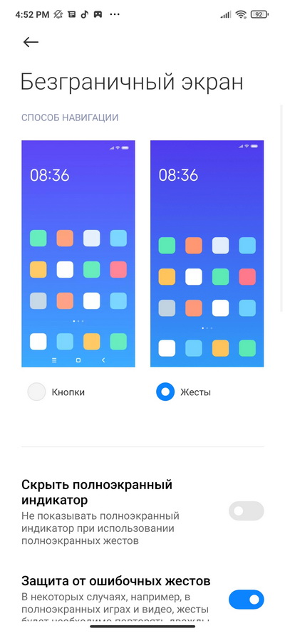 Стандартные варианты управления для MIUI: экранные кнопки и жесты. Можно включить сенсорный помощник.