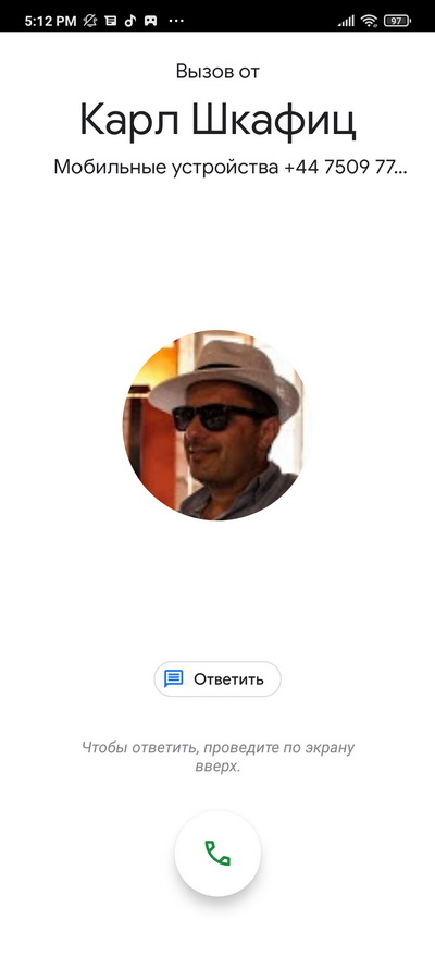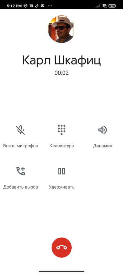 Входящий звонок и режим разговора. Записи разговоров нет.