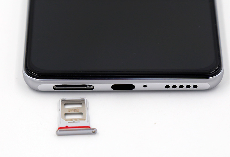 На нижней грани: слот со вставкой под сим-карты, порт Type-C, микрофон, прорезь стереодинамика.
