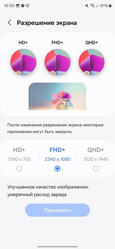 Как обычно, в настройках дисплея немало возможностей. Темная и светлая темы, можно менять размер шрифта и масштаб объектов. В настройке частоты обновлений (прямо 120 Гц выставить нельзя, можно выставить стандартные 60 Гц или адаптивную частоту, чтобы смартфон сам выставлял повышенную частоту, когда считает нужным).