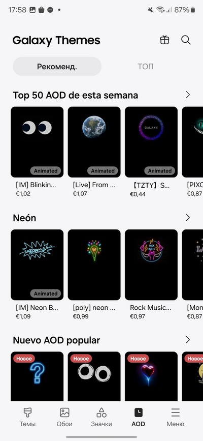 Ну и также для AOD можно скачивать и другие варианты оформления в магазине Samsung.